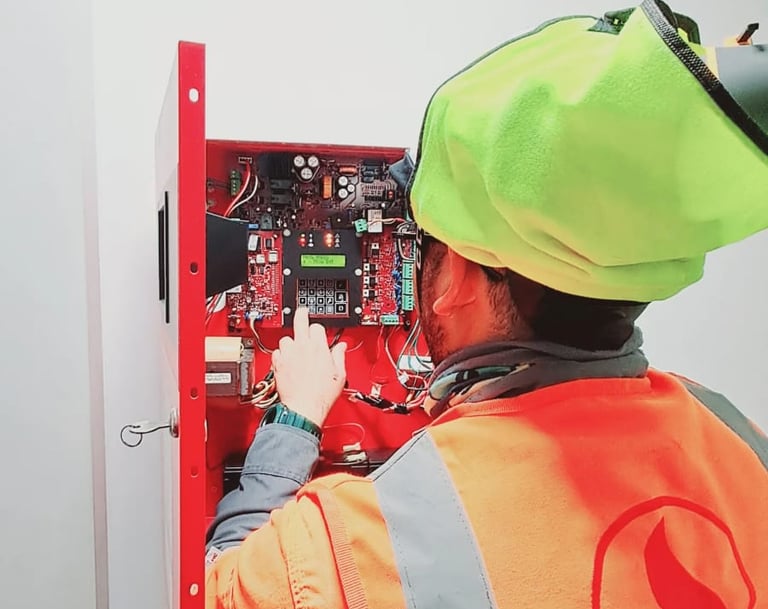 Implementación y mantenimiento de estación manual, detectores de humo, sensor de temperatura, sirenas estroboscópicas, sirenas, photobeams,. Sistemas convencionales y direccionables. Paneles de control de alarmas y gabinetes contraincendio.